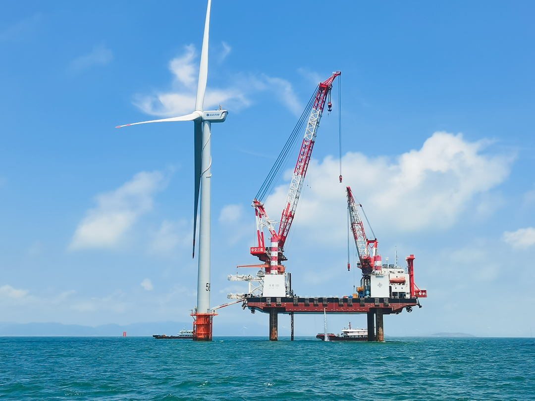 在宁波象山南田岛东南海域,,,,,,一座座重大的风机耸立在海平面,,,,,,这正是浙江省最大的海优势电项目——国电象山II期海优势电项目。。。。。